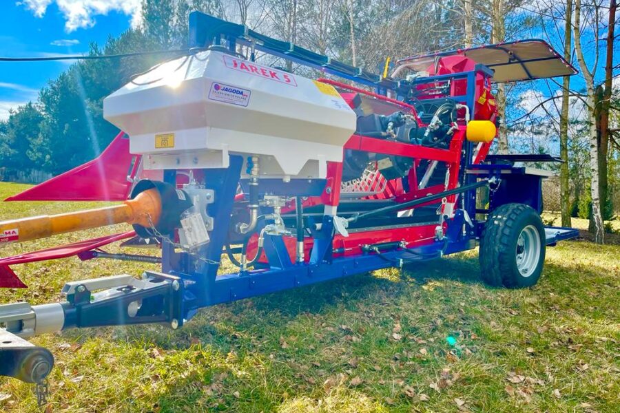 Kombajn do zbioru owoców jagodowych JAGODA 300 to nowoczesne rozwiązanie zapewniające wysoką jakość zbioru dzięki innowacyjnym otrząsaczom i systemowi czyszczącemu. Regulowana wysokość i platforma do zbierania owoców dostosowują się do różnych warunków plantacyjnych, co ułatwia efektywną pracę na plantacjach. Bezprzewodowe sterowanie kołami oraz regulacja wysokości sprawiają, że kombajn jest łatwy w obsłudze i idealnie nadaje się do intensywnego zbioru jagód.